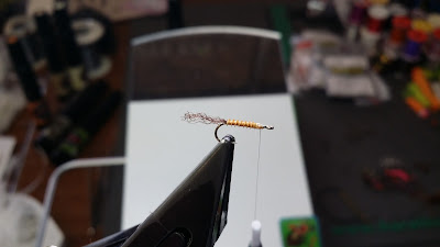 | Wind the CDC loop one complete turn to create a "soft hackle." Whip finish |