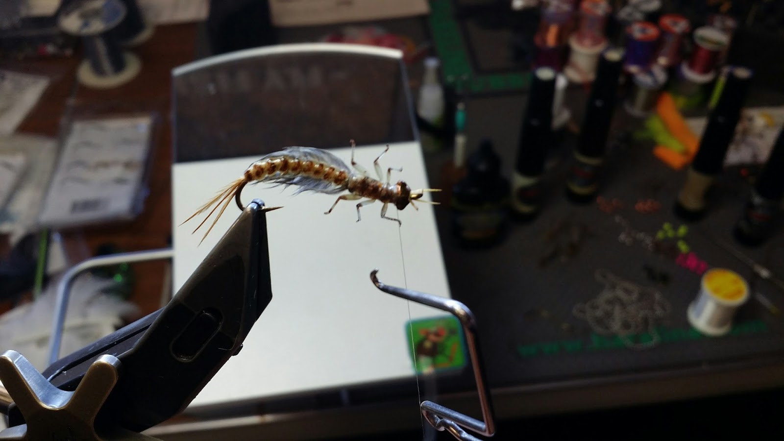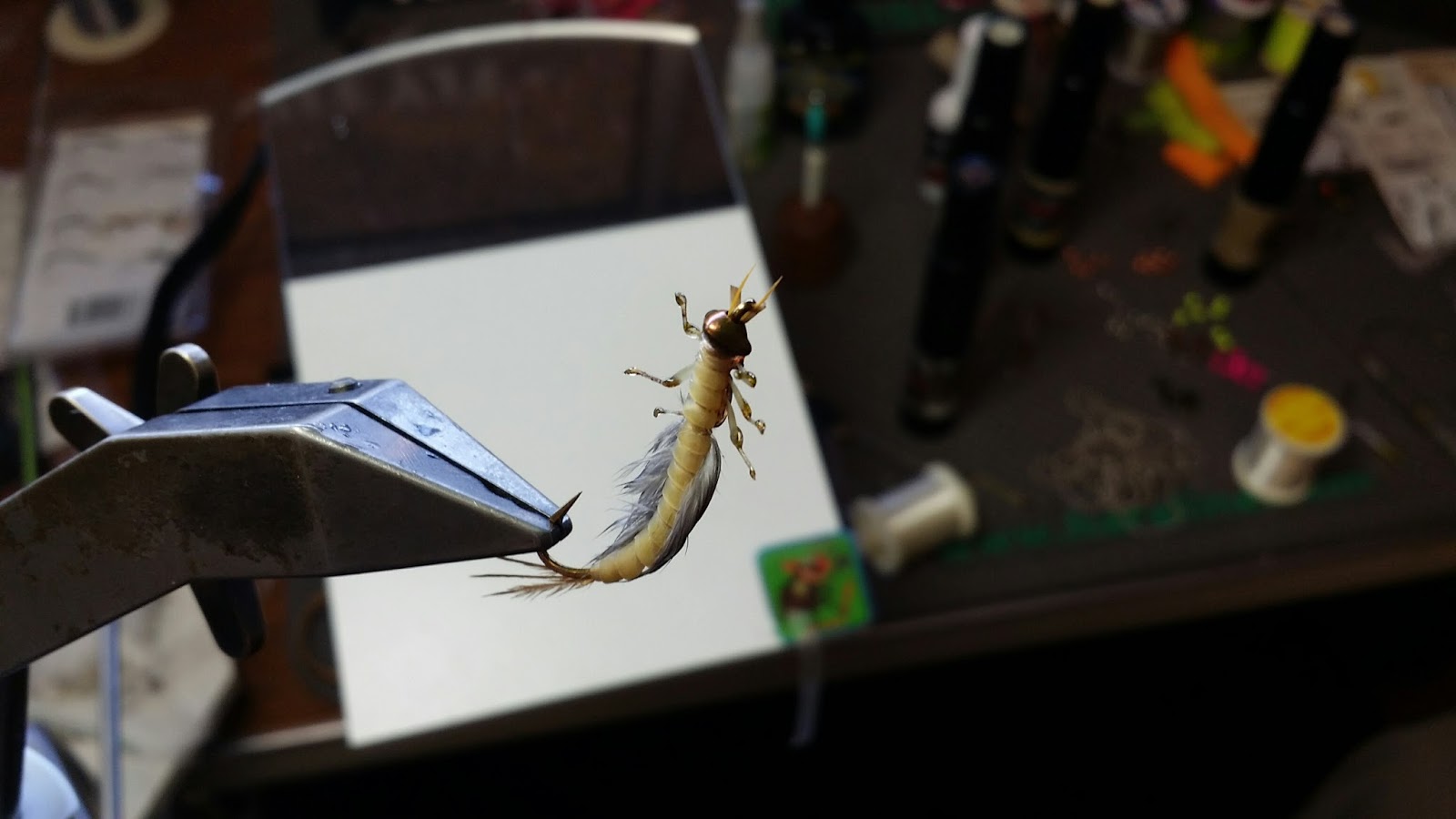 Burrowing Mayfly Nymph Pattern- Daiichi 1870, Flymen Evolution Tungsten Beads, Virtual Nymph Skin, Deer Creek UV Flex Resin