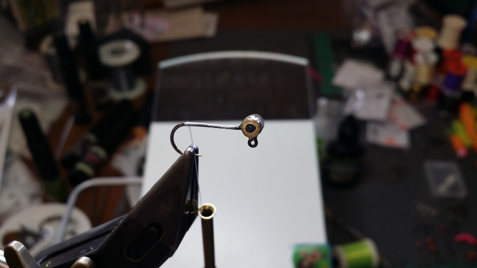 | Palmer Cross-cut Rabbit forward and whip finish behind the jig head |