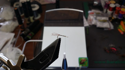 | Wind the CDC loop one complete turn to create a "soft hackle." Whip finish |