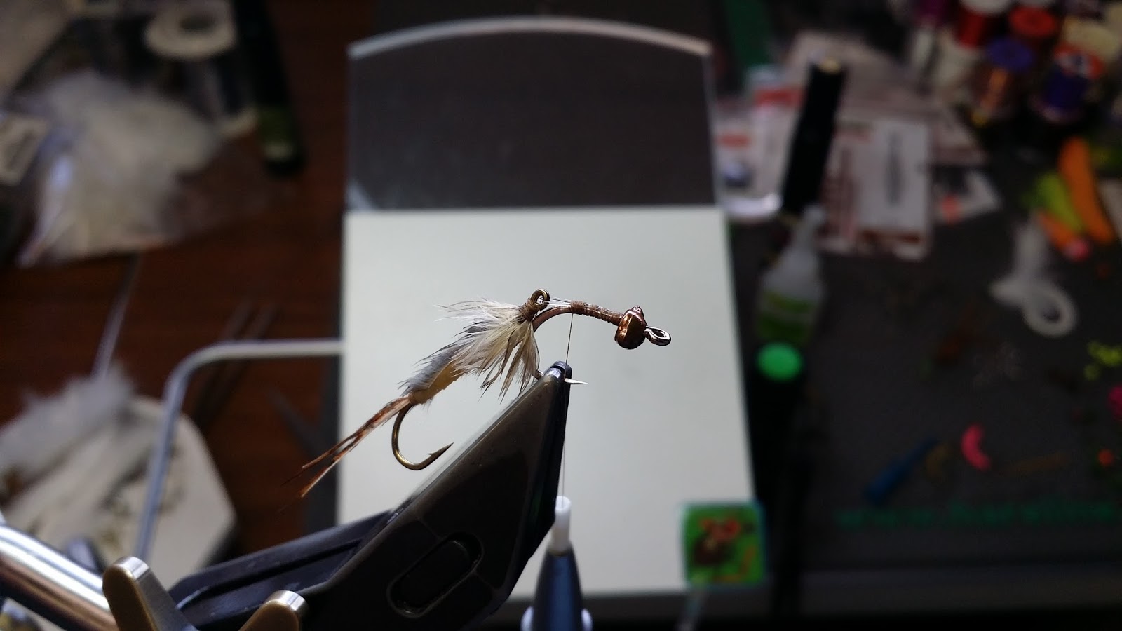 SBS Hise's Nympho-minnow-ac Variation- Virtual Nymph Nymph Skin, Daiichi Hooks, Hareline Barred Ostrich Plumes and various SotherFeathers and Flymen Nymph Head Evolution Beadheads