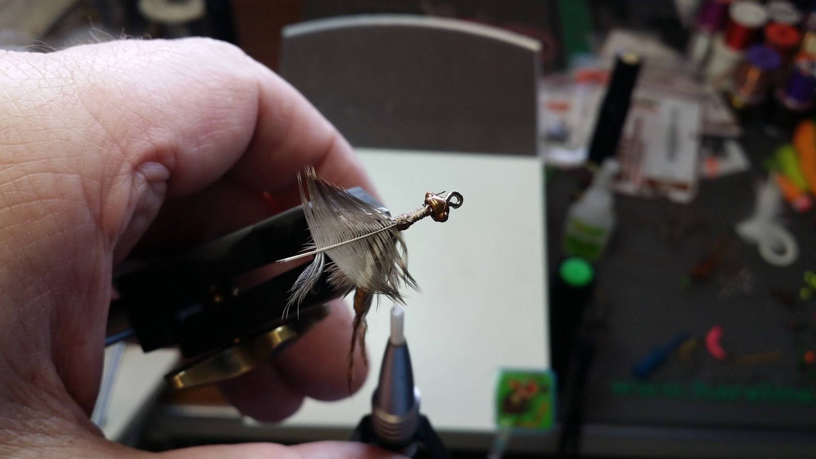 | Color and secure 2 or 3 plumes in place at the rear of the hook |